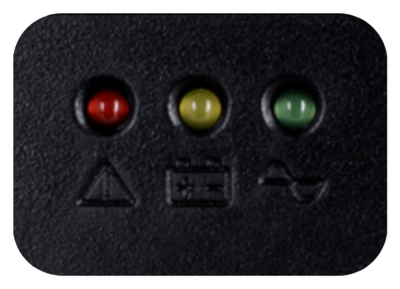Indicadores LED intuitivos informam sobre o estado operacional atual, a energia da rede e a operação da bateria.