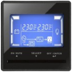 LCD intuitivo que exibe métricas críticas do UPS, facilitando a monitorização e gestão.