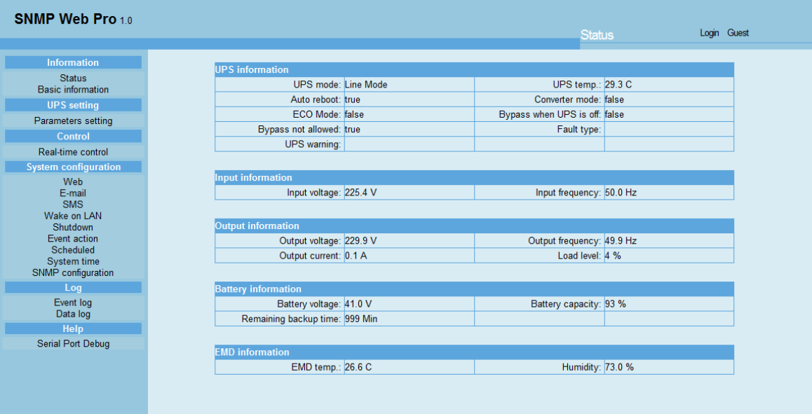 - Programação de ligar/desligar o UPS, teste de bateria, controlo de tomadas programáveis e controlo de alarme sonoro.