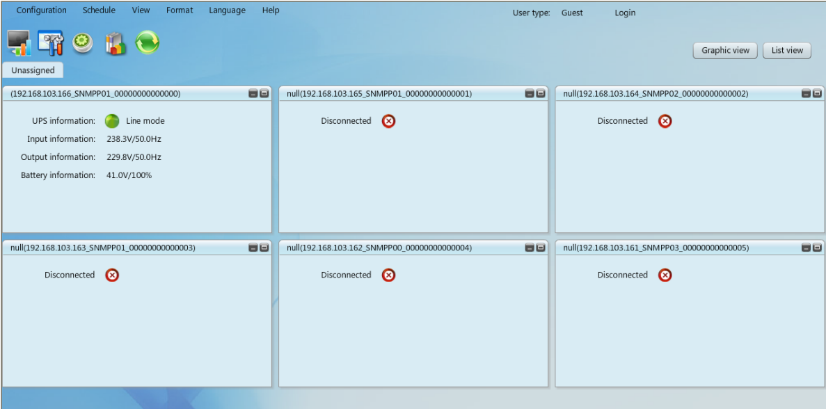 | Software de gestão inteligente para monitorizar e controlar múltiplos UPS via LAN e Internet. | Software de gestão avançado para monitorizar e controlar múltiplos UPS via LAN, Internet e placa SNMP. | O SNMP Web Manager é um software de gestão para placas web SNMP. Os utilizadores podem pesquisar e operar todos os dispositivos SNMP na LAN através desta interface. Em seguida, podem clicar duas vezes no dispositivo para abrir a página de monitorização do servidor web. |